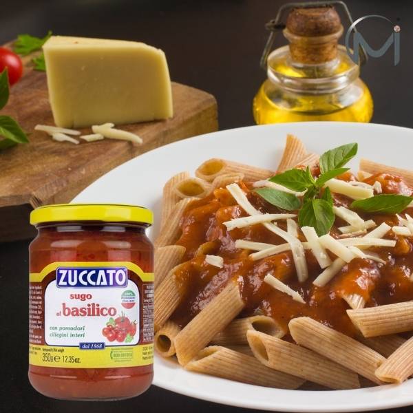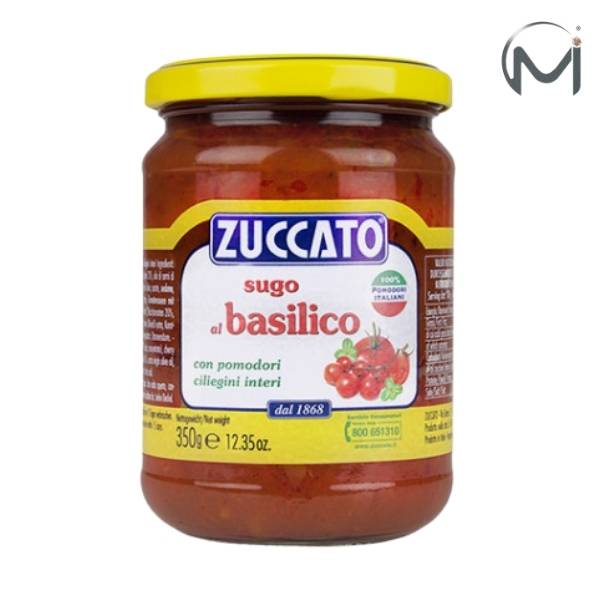 Zuccato Sugo al Basilico is a fragrant and flavorful sauce that highlights the simplicity of Italian cuisine. Made with 66% tomato (pulp and double concentrate), 15% cherry tomatoes, and 1% fresh basil, this sauce is enriched with sunflower oil, onion, carrot, celery, and a hint of garlic.